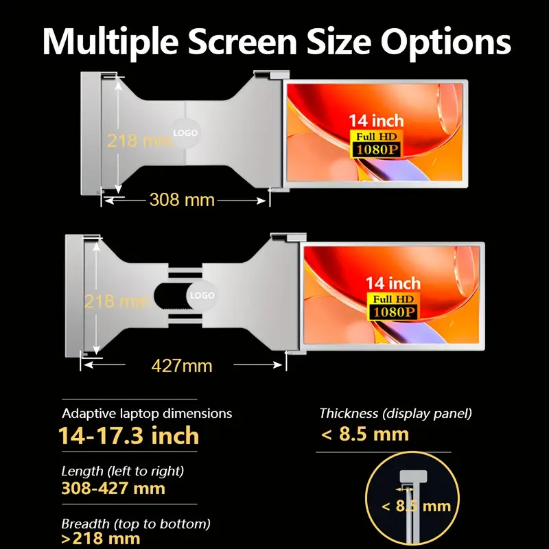 Boost your productivity with this 14-inch portable notebook expansion screen, designed to extend your laptop display and enable dual-screen efficiency. The 1080P FHD IPS display delivers crisp visuals and wide viewing angles, perfect for work, gaming, or entertainment.