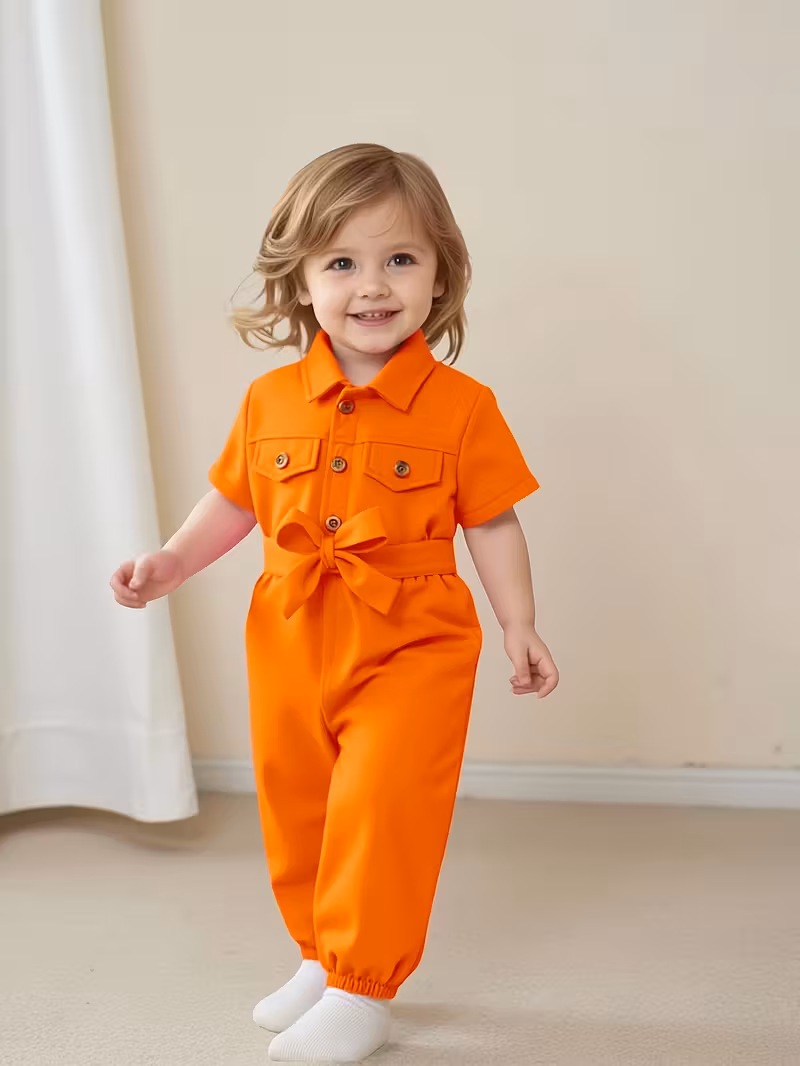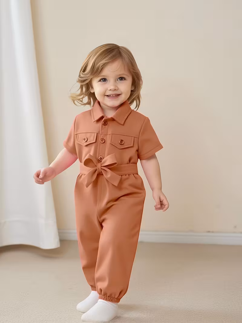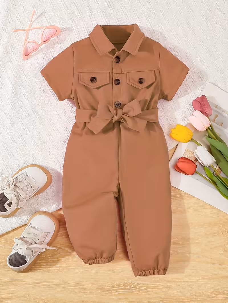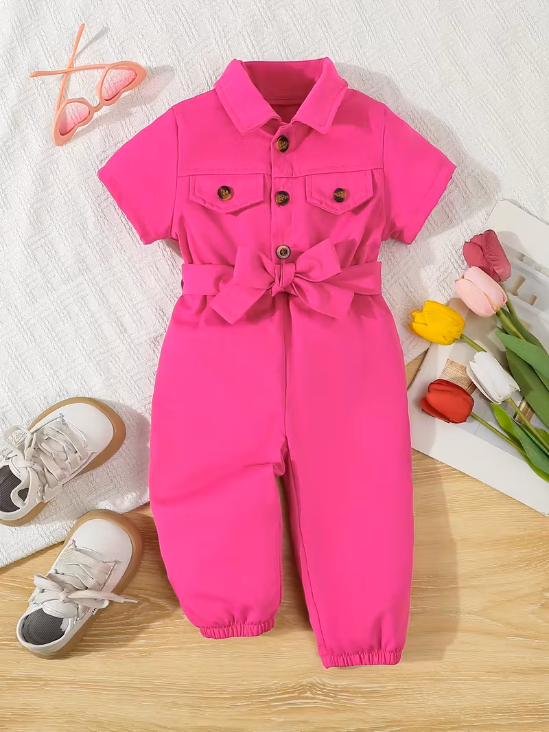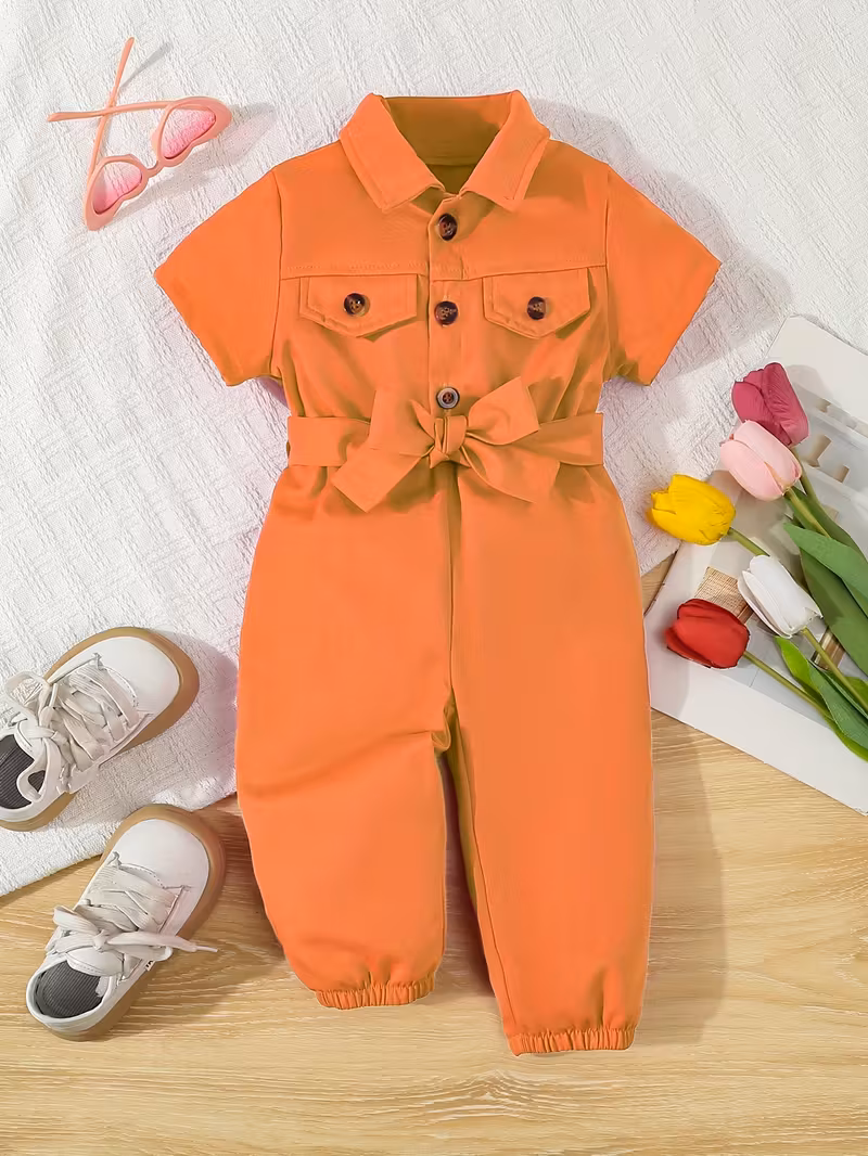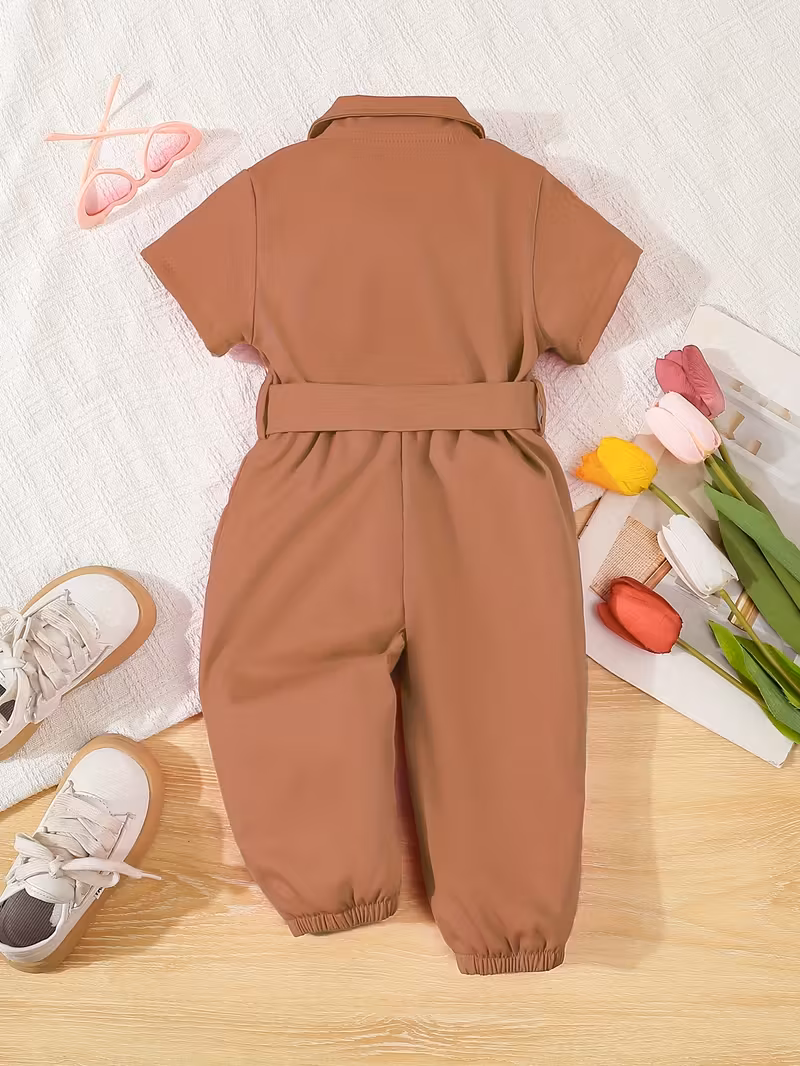 Adorable Girls’ Summer Short Sleeve Romper with Belt