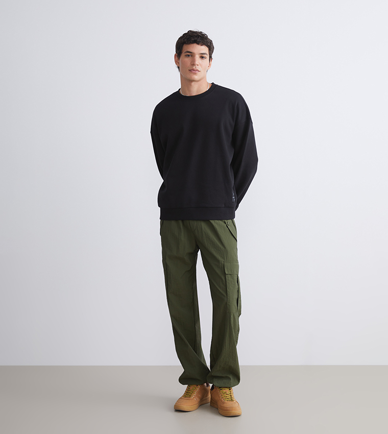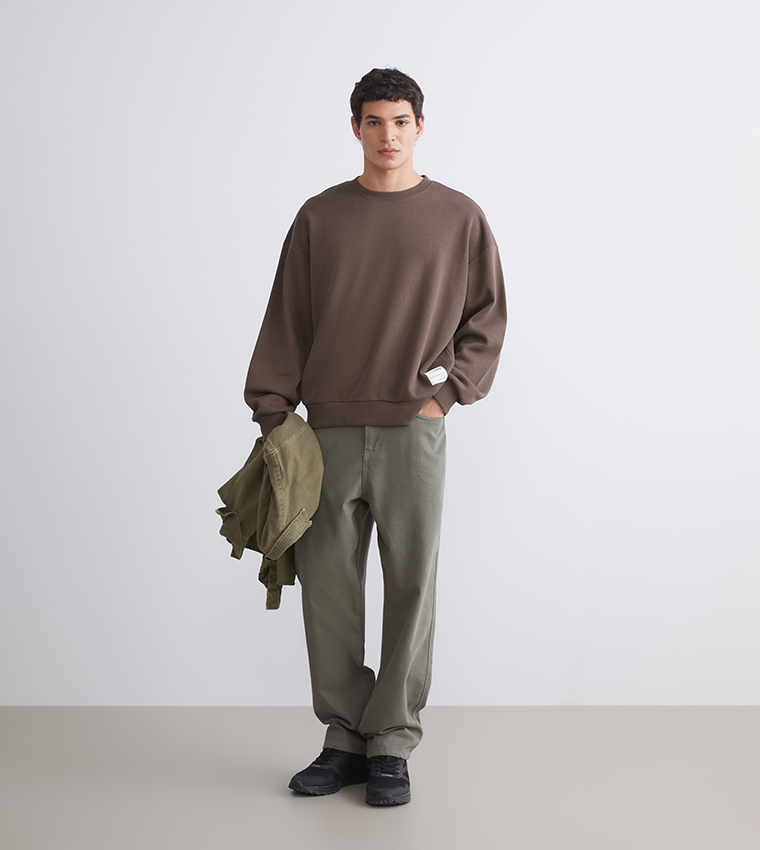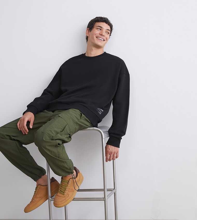 A cozy crewneck featuring a standout badge/patch detail, ribbed cuffs & hem, and a soft mid-weight feel. Easy regular/relaxed fit for everyday layering.