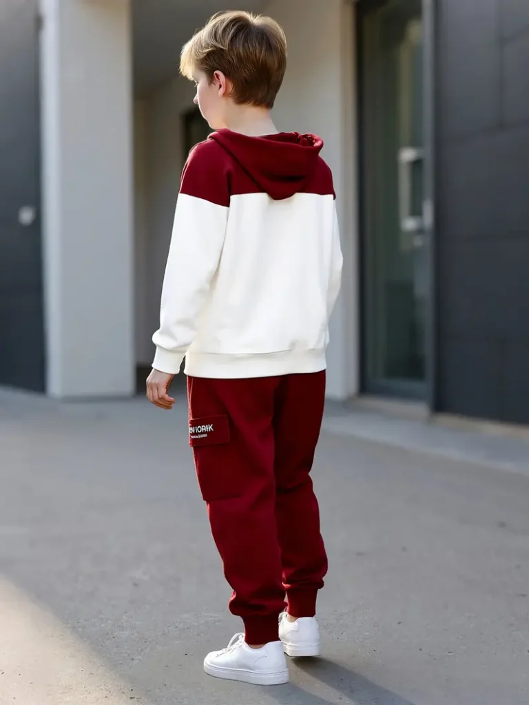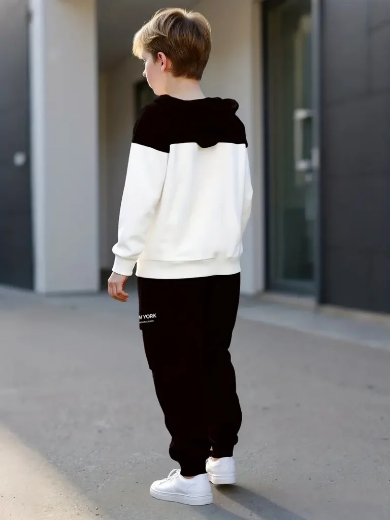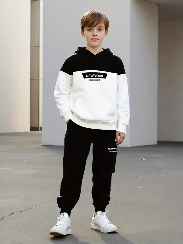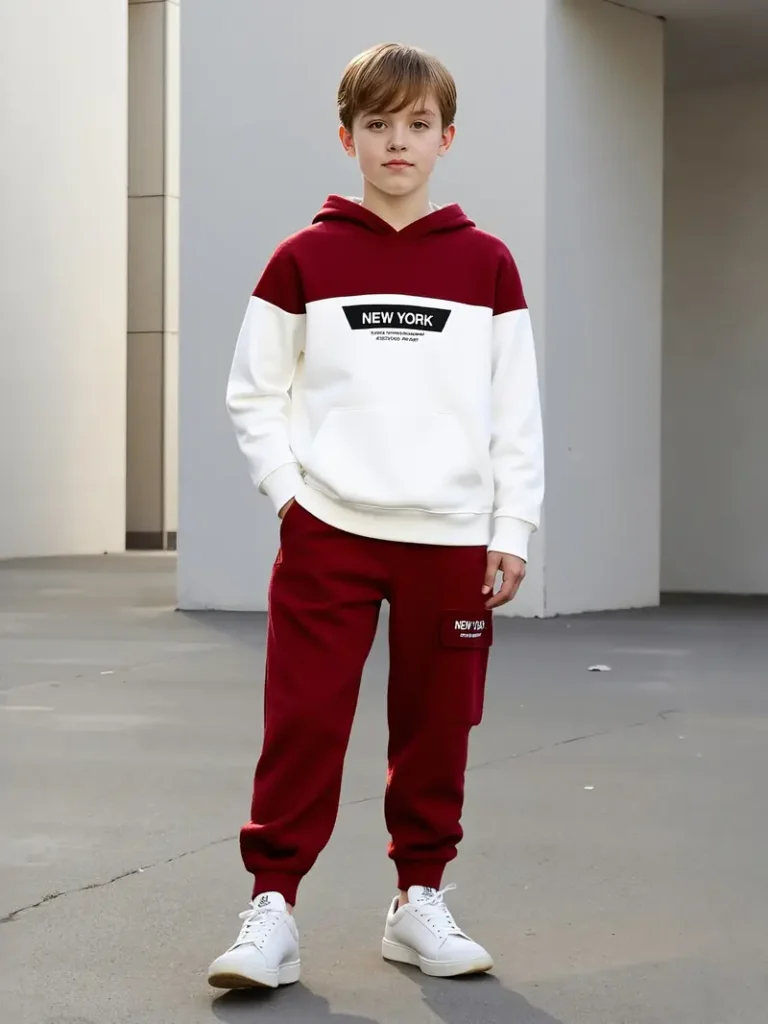 This Boys’ Long Sleeve and Long Pants Fashion Casual Set is the ultimate combination of style and comfort, perfect for kids aged 8-12 years. The set includes a cozy hoodie featuring a bold “NEW YORK” letter print and a contrasting color design. The long sleeves and comfortable long pants with a drawstring waist ensure a great fit for everyday activities.