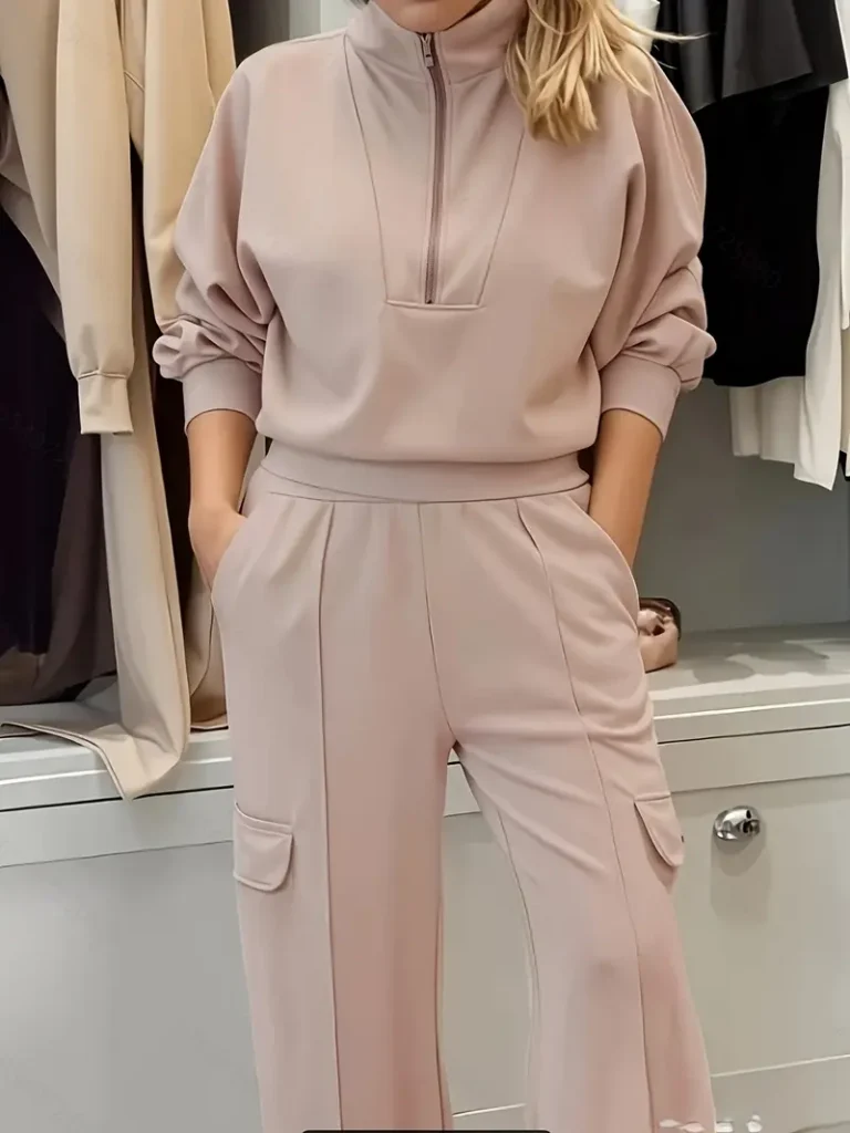 Stay chic and comfortable with this stylish casual sweat set featuring a zippered hoodie and relaxed pants. Perfect for any season.