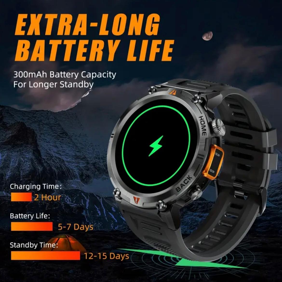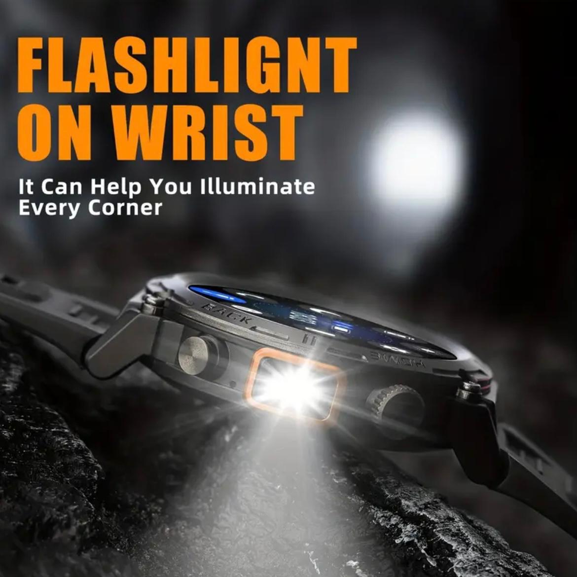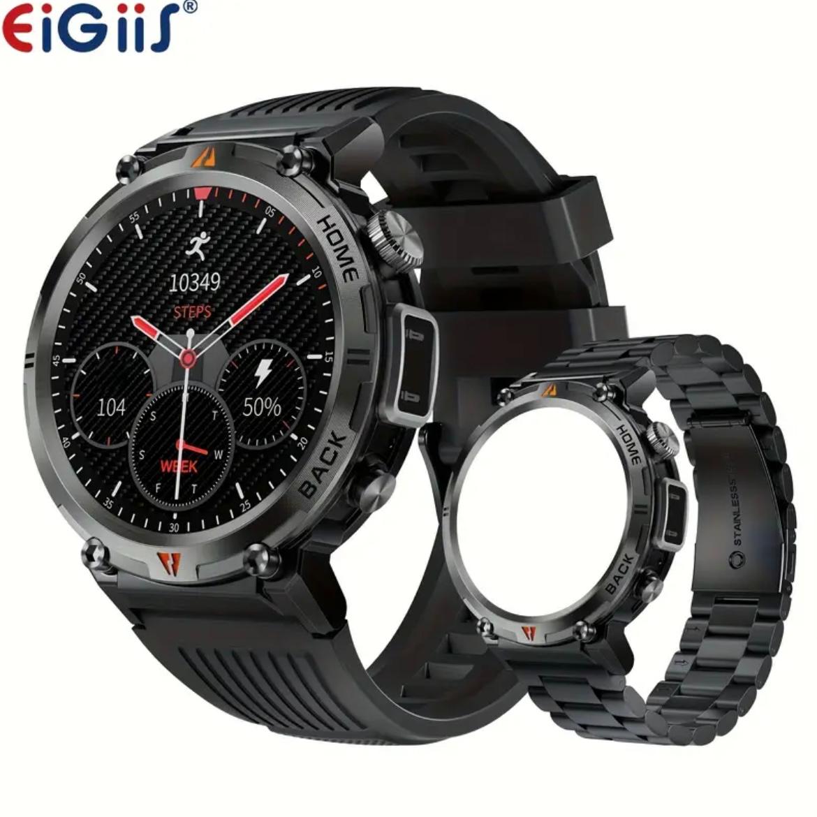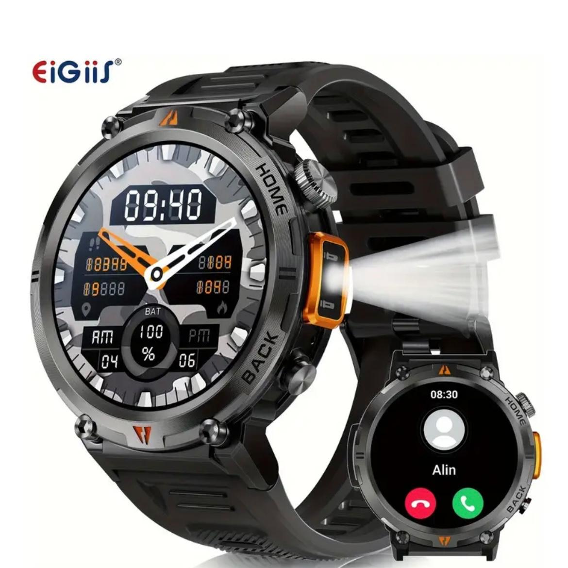 EIGIS Men’S Outdoor Sports Watch with IPX8 (3ATM) Flashlight, 1.45-inch Display, Wireless Calling, Multiple Sports Modes, Compatible with for iphone & Android Phones, Zinc Alloy, Magnetic Charging, 360×360 Resolution, TFT Screen, Battery, Casual Style, Activity Tracke