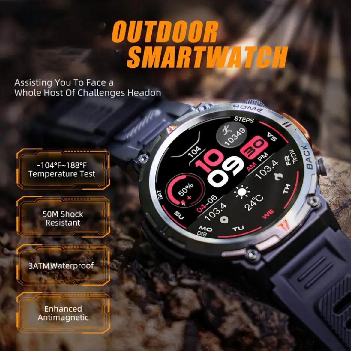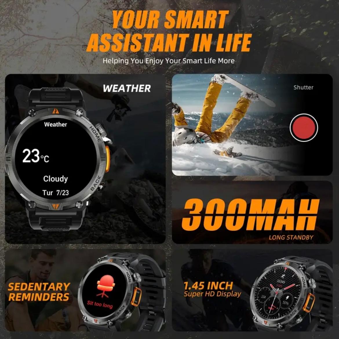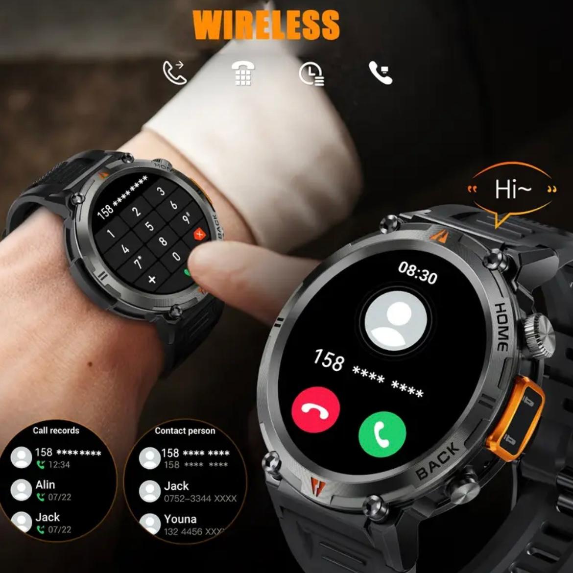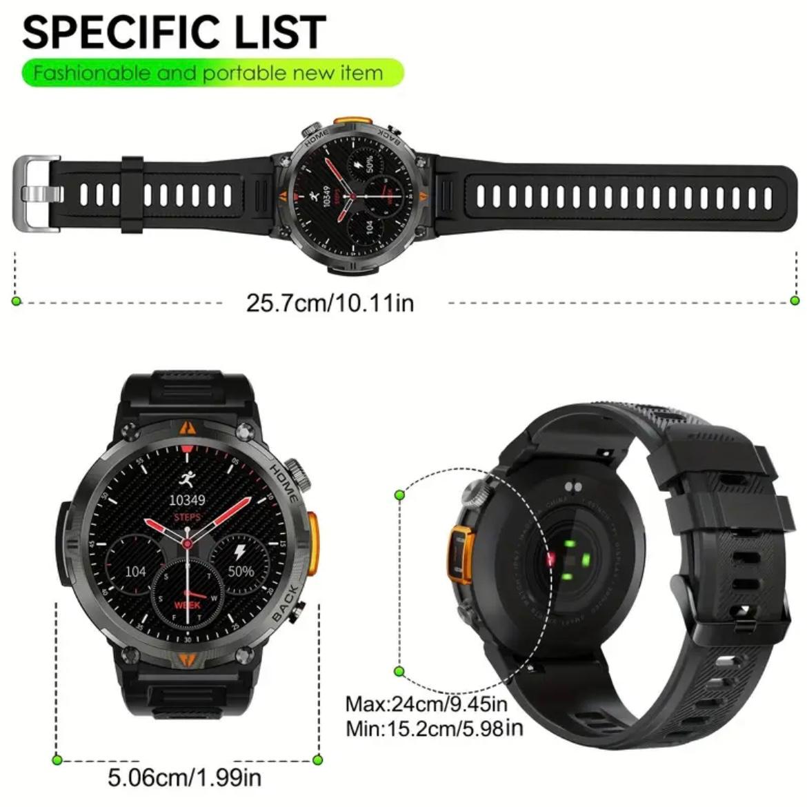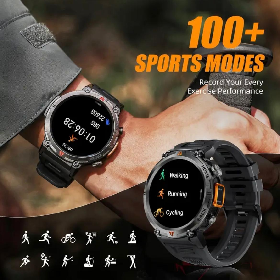 EIGIS Men’S Outdoor Sports Watch with IPX8 (3ATM) Flashlight, 1.45-inch Display, Wireless Calling, Multiple Sports Modes, Compatible with for iphone & Android Phones, Zinc Alloy, Magnetic Charging, 360×360 Resolution, TFT Screen, Battery, Casual Style, Activity Tracke