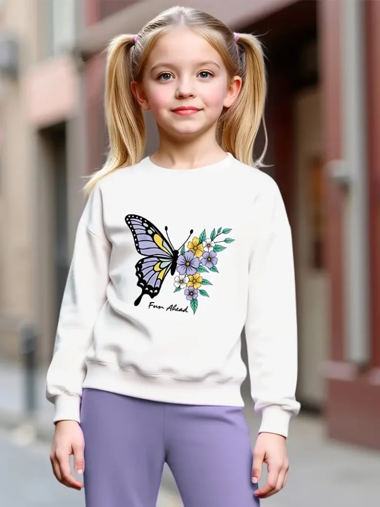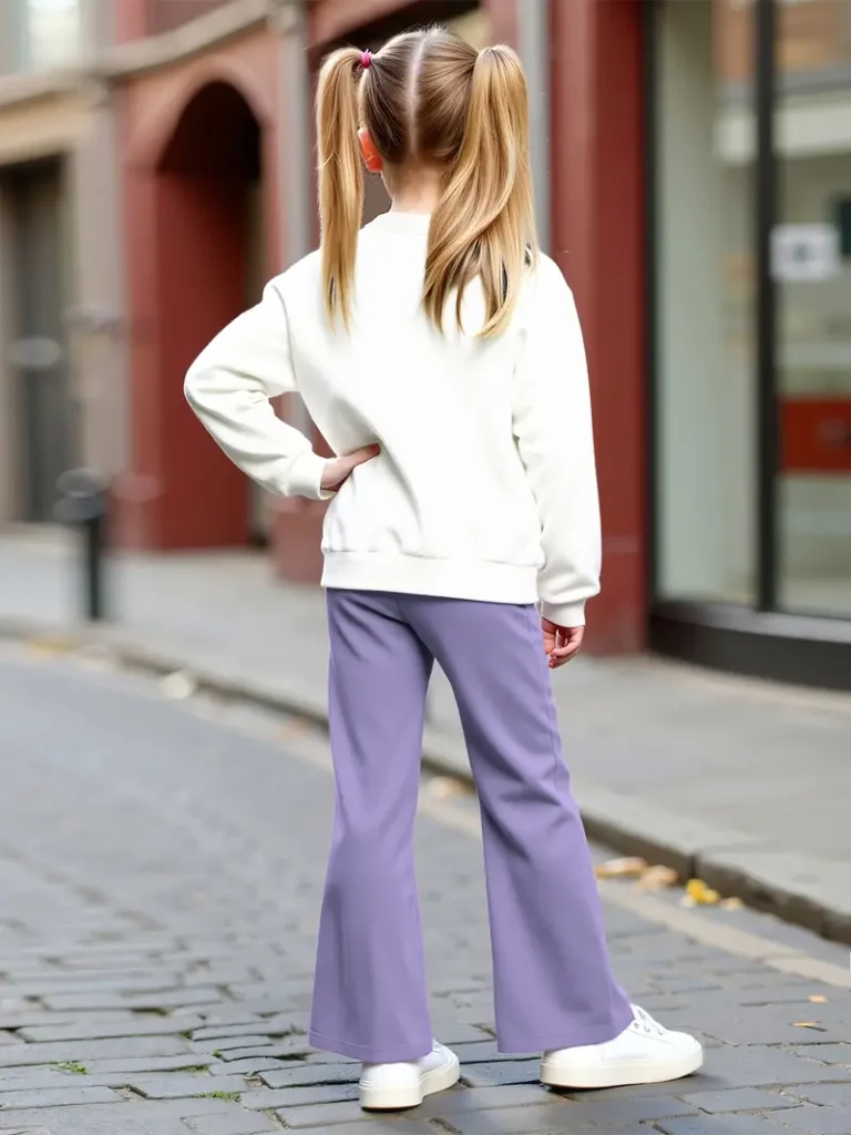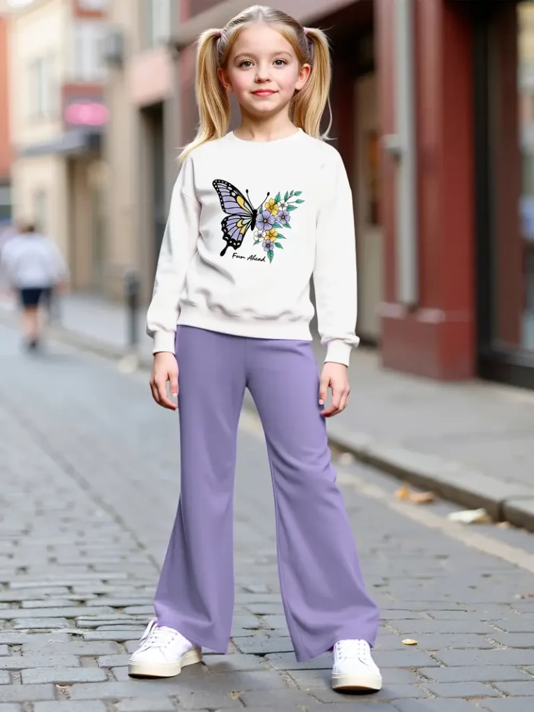 This Girls’ Knitted Long Sleeve and Pants Set combines fashion, comfort, and versatility, making it an ideal choice for girls aged 8–12. The set includes a round-neck top with a charming letter and butterfly print, paired with solid color micro flare pants that add a trendy, modern silhouette.