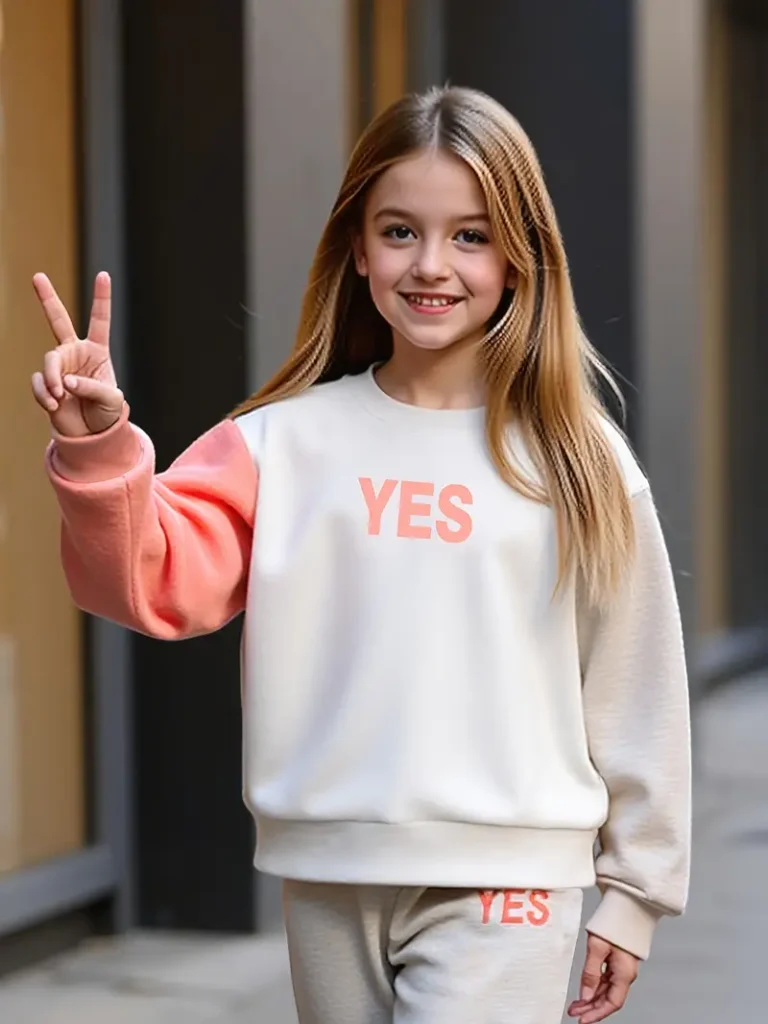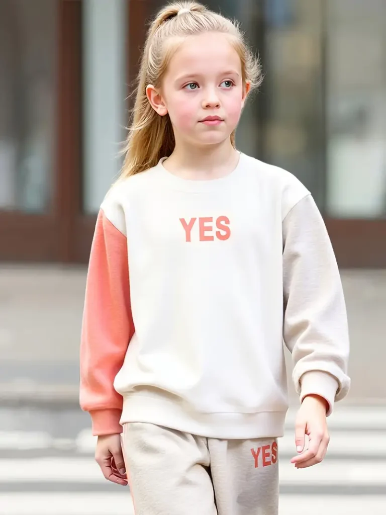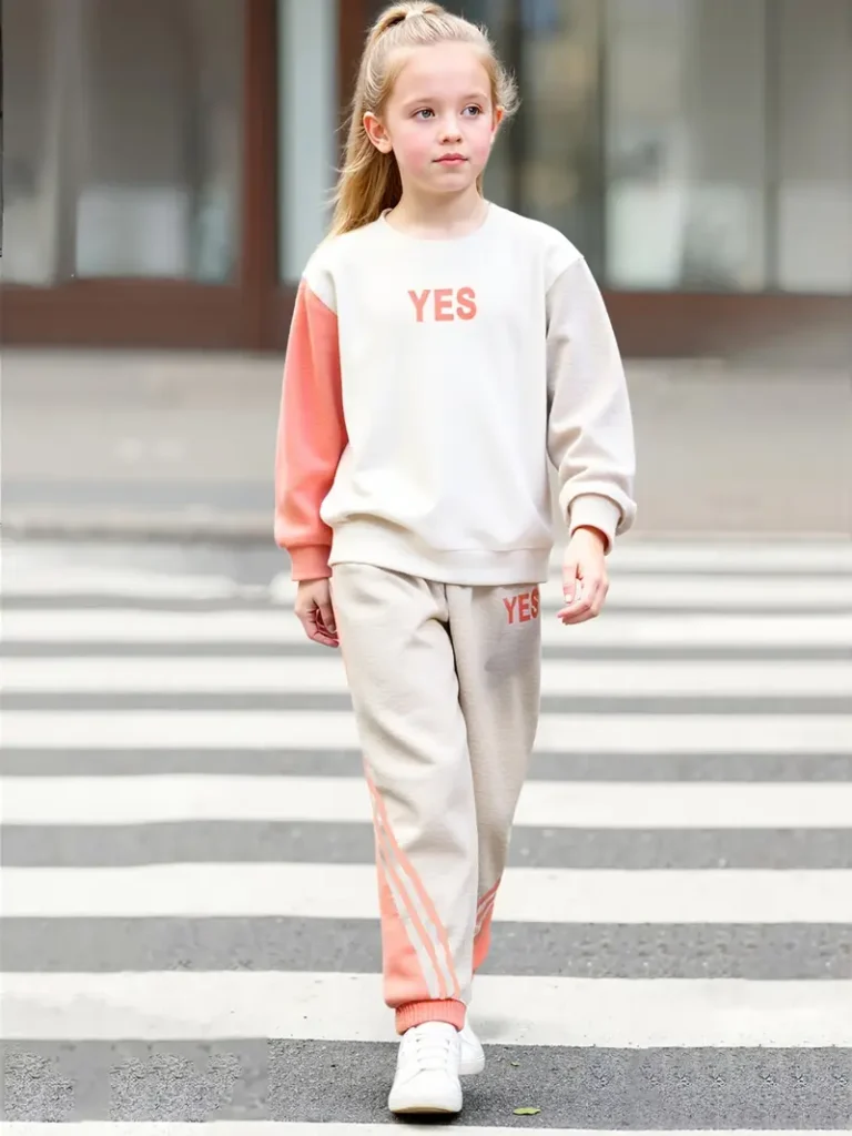 Keep her comfy and stylish with this Girls’ Letter Print Long Sleeve and Pants Set, perfect for spring and autumn. Featuring a round-neck top and casual-fit pants in soft light beige fabric, it’s ideal for school, vacations, or outdoor adventures.