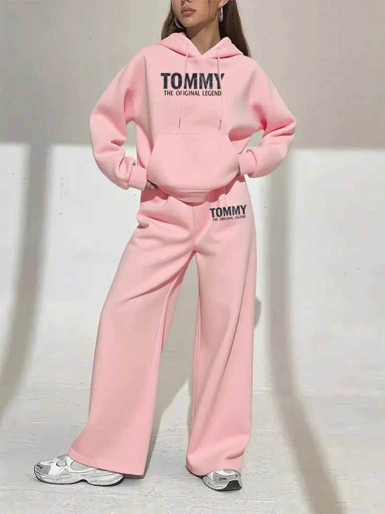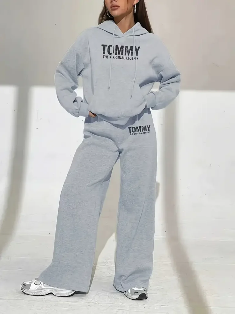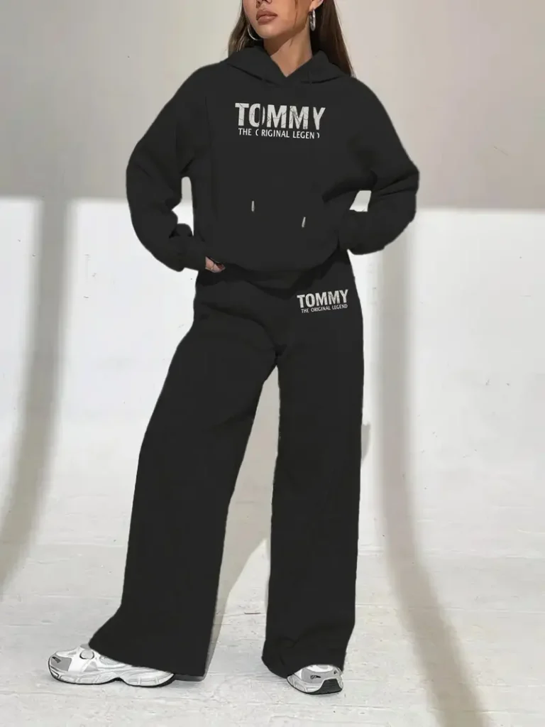 Women’s Winter Hoodie & Pants Set – “TOMMY” Graphic Print